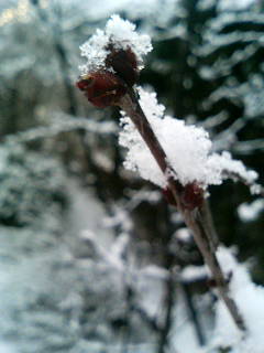 昨夜と今朝、ちらっと降った雪で庭が白く覆われています。
