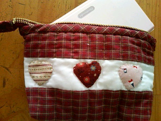 キット製品ですが、ハートのパッチワークポーチが完成しました♪