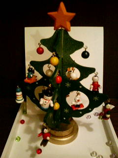世間ではクリスマスイブ、明日はクリスマスですね~。 子供が小さかったときこそ、ツリーを飾ったり電飾を点けたりしたもんだけど 今じゃ、ひっそりですよ。 それでも、ほんのちょっとクリスマスアイテムを飾ってみました。 これは娘がドイツに行った時、買ってきてくれたツリーの飾りです。 1年中クリスマスグッズを売っているケーテフォルファルトというお店 から買ったそうです。 高さ、20センチばかりの小さなものです。 木でできている素朴な飾りです。